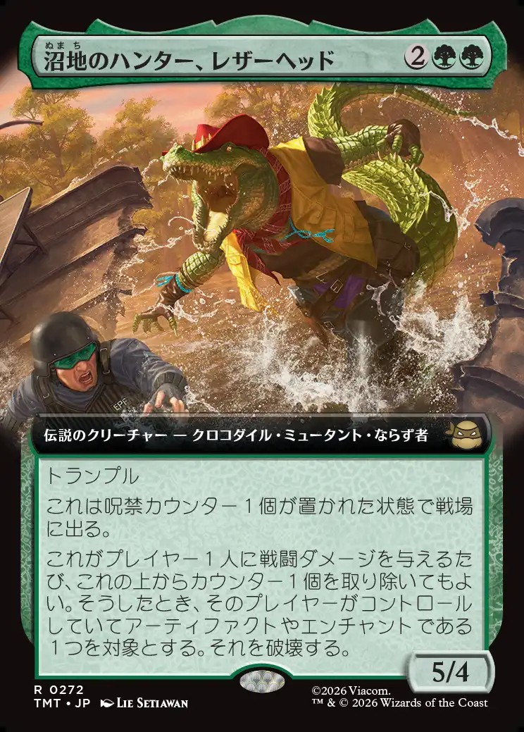 【Foil】【拡張枠】【日本語版】沼地のハンター、レザーヘッド/Leatherhead, Swamp Stalker